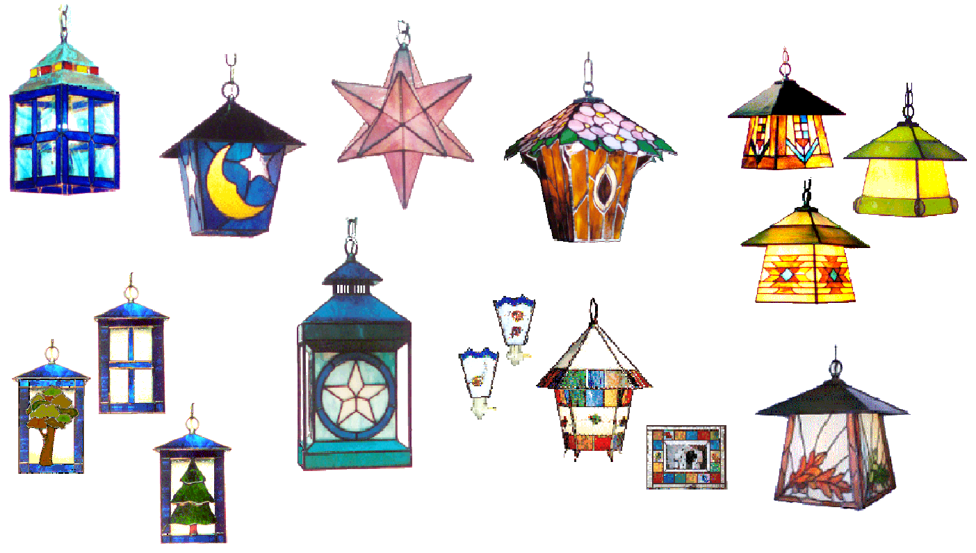Some incorporate unusual materials like copper sheet and brass rod, others just the usual stained glass construction. We think they are all special!