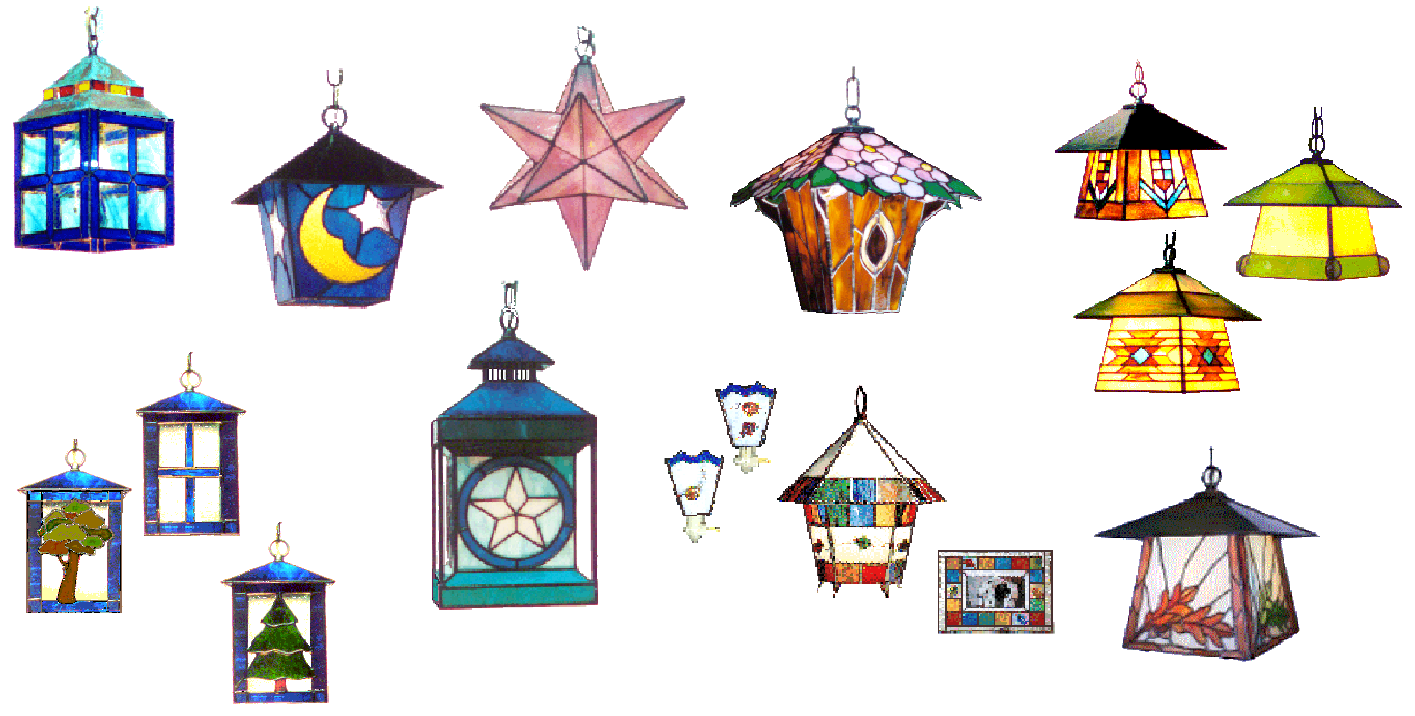 Some incorporate unusual materials like copper sheet and brass rod, others just the usual stained glass construction.
